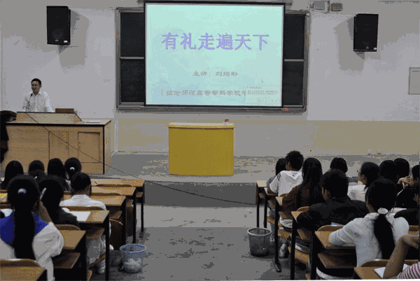 刘绍彬老师结合同学们身边大量鲜活的例子,生动地给同学们讲述了个人礼仪、次序礼仪、求职礼仪、电话礼仪等和学生生活、学习密切相关的礼仪知识,整个讲座精彩不断,会场里不时发出阵阵会心的笑声和掌声。90分钟的讲座让同学们觉得受益非浅。