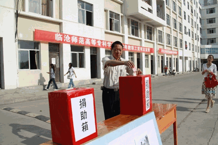 最后,郭镛教师发表讲话。他说,作为一名临沧师专人,永远不会忘记1988年11月6日发生在临沧的耿马大地震;作为一名云南人,永远不会忘记2007年6月4日发生的普洱大地震;作为一名中国人,永远不会忘记2008年5月12日的汶川大地震;云南是地震多发带,地震后的伤痛,我们与汶川、玉树感同身受!我们永远不会忘记当年受灾时全国乃至全世界人民给我们的帮助和支持。今天,在临沧师专,我们要把爱心传递下去,用我们的爱心温暖玉树受灾的群众,为当地灾后重建献上微薄的力量。愿逝者安息,生者坚强!玉树,我们与你同在!