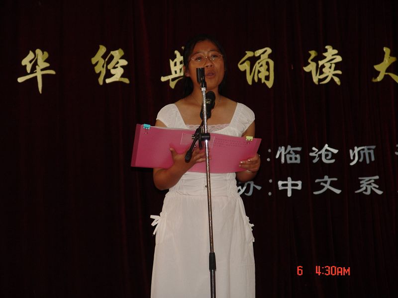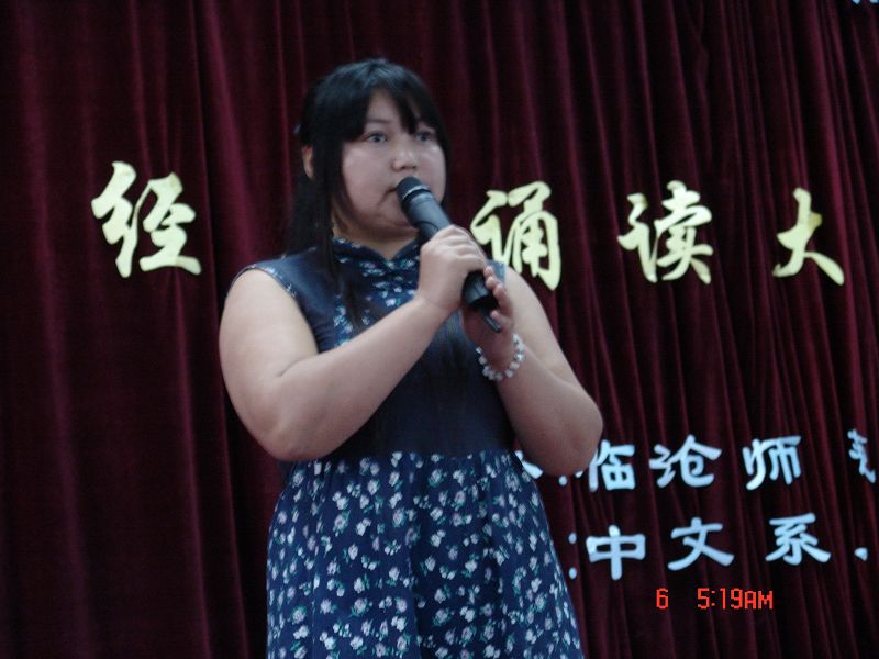 决赛分为学生组和教师组,14名学生入围决赛,从初赛胜出的4名教师作为诵读展演为大赛抹了重重的亮色。