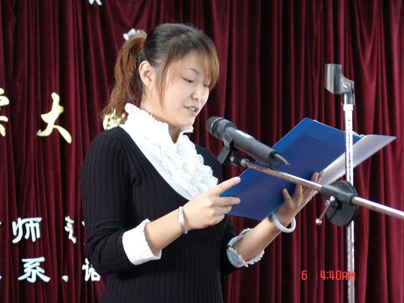 中文系主任赵卫华教授对比赛作了点评:选手准备充分,精神面貌好,感情充沛,语言表达自然、流畅。说到不足,他说:选手的普通话音准可以再上一个台阶,舞台表演经验需要继续积累。之后,作为诵读爱好大军一员的赵老师给观众们送上了《海燕》诵读,浑厚的嗓音、激昂的感情引发全场阵阵掌潮。赵教授还饶有雅兴地用重庆话全新诠释了《海燕》,观众的笑声、掌声交叠,给赵教授的表演终极至上的评价。