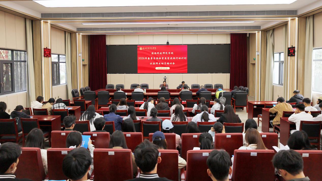 3月1日,学校对2026年春季学期体育美育浸润行动计划派驻师生进行岗前培训。校党委委员、副校长梅英出席并讲话。