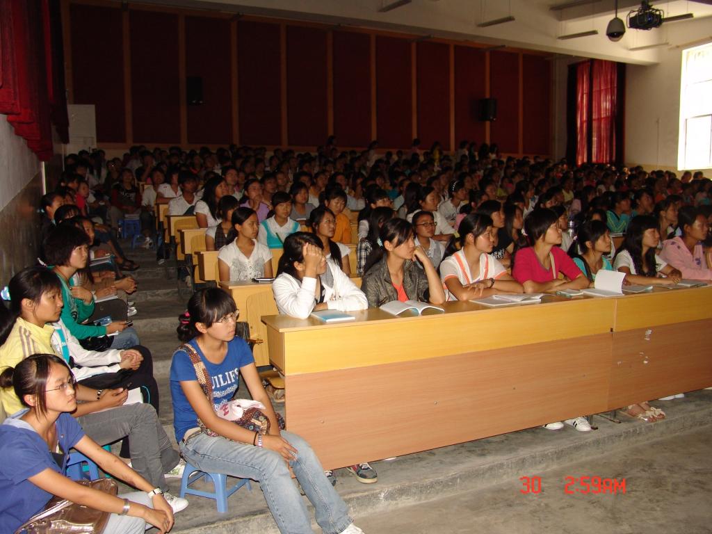 (党委宣传部张玉超)08年8月30日,学生处及相关部门组织的新生入学教育拉开序幕。教育以讲座形式展开,以系为单位,安排在新老教学楼的共四个多媒体教室同时进行。讲座内容包括宣传部长周孔张老师主讲的《市情及校情介绍》、李发荣老师主讲的《学籍、教学管理规定介绍》、张礼芳老师主讲的《机房管理及使用规定》、刘玉老师主讲的《新生适应教育宏观篇》和《新生适应教育素养篇》、施勇老师主讲的《新生适应教育能力篇》、刘庚碧老师主讲的《新生适应教育生活篇》、汤万杰老师主讲的《心理健康教育》、辛锡灿老师主讲的《介绍团委、校学生会》、市政法委主讲的《维稳工作现状》、黄光海老师主讲的《学校安全知识教育》、汤万杰老师主讲的《职业生涯规划》、易茁老师主讲的《图书、期刊借阅规定》等。培训将持续至9月2日,历时4天。作为监督新生学习的手段,9月3日设置了测试,检验新生的学习成果。
