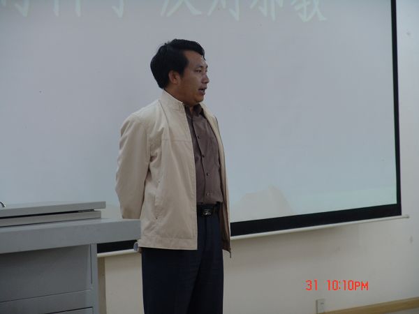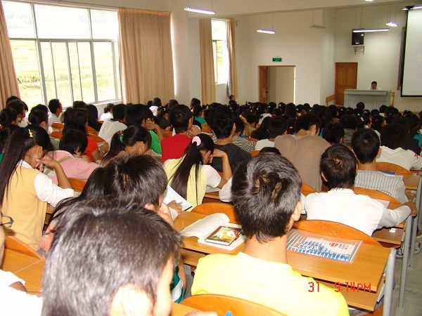 董副书记首先讲述了我国、我市邪教发展现状,接着叙述邪教产生的环境和背景。他说:我国处于社会转型期,人民内部矛盾突现,刑事犯罪率高,是一个执政领导的恐慌期。邪教问题不单是中国问题,还是世界问题,据统计,约3000个邪教组织在世界范围神出鬼没、甚至行走于光天化日。老少边穷地区是邪教滋生、蔓延的温床。目前,作为中国西南边陲的临沧,下辖的77个乡镇都有邪教的踪迹,打击邪教组织工作任重道远。邪教之邪表现为它反人类、反科学、反社会、反政府;残害生命、侵犯人权;骗取钱财、精神控制;破坏生产扰乱社会;侵蚀政权、践踏法律。董副书记在高度凝练的综述后,都会例举生动的案例,帮助新生形象地接收信息。就在新生体会到邪教的邪恶,思考怎么办时,董副书记适时点出了国家对打击邪教的基本方针:旗帜鲜明、态度坚决、有效阻止,保持打击高压态势,梳堵结合,团结、挽救绝大多数,依法打击极少数。董副书记最后呼吁:反邪教、人人有责、人人参与,期待新生能为此济民生之举给予支持,共建和谐、平安临沧。
