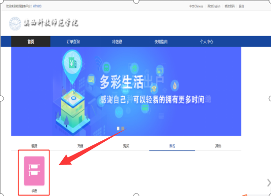 1.登陆后将出现以下界面,请点击左下角的“学费”项目。目前只能缴纳学费,因住宿费有四、六人间的区别,需等实际入住后确定,届时学校另行通知缴纳。