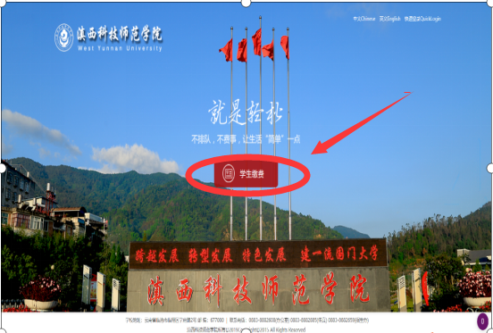 2.若无法直接打开缴费平台,请进入滇西科技师范学院官方网站http://www.wynu.edu.cn,在首页下方找到“信息平台”——“学生网上缴费系统”点击进入缴费平台。如下图: