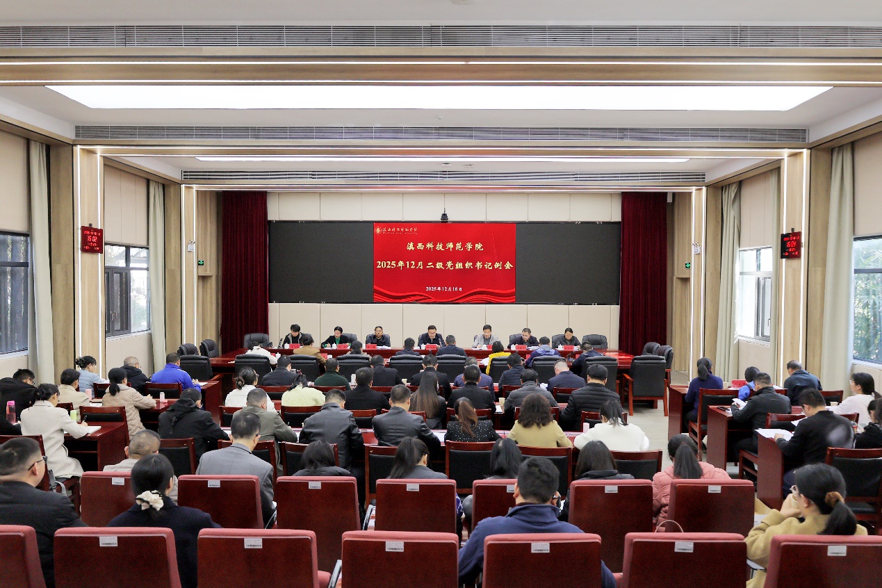 12月16日,学校召开2025年度二级党组织书记抓基层党建工作述职评议会,深入学习贯彻习近平总书记在中央经济工作会议上的重要讲话精神和中共中央政治局会议精神。校党委书记阮凤斌主持会议并讲话。