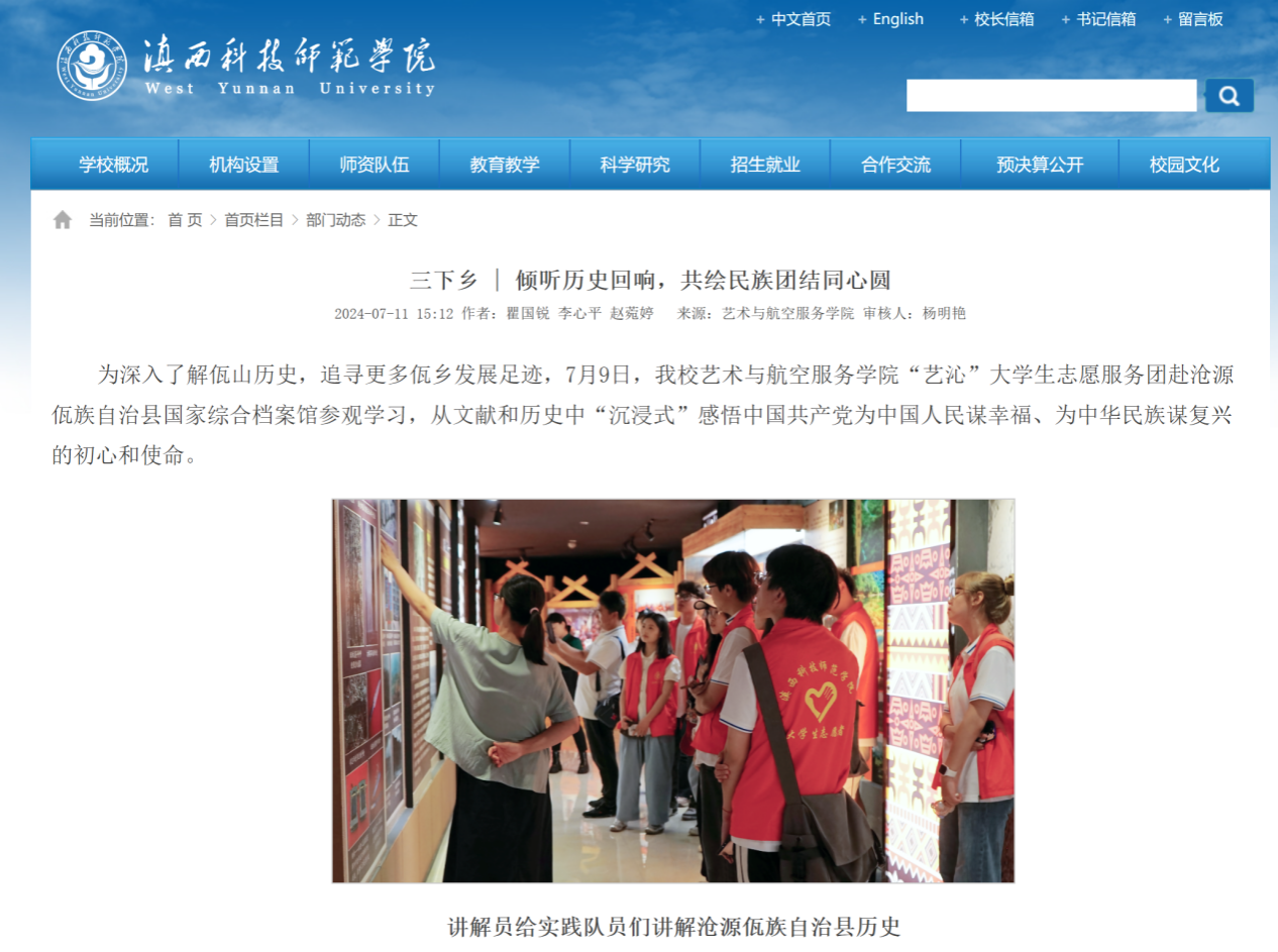 艺术与航空服务学院“艺沁”大学生志愿服务团赴沧源佤族自治县国家综合档案馆参观学习