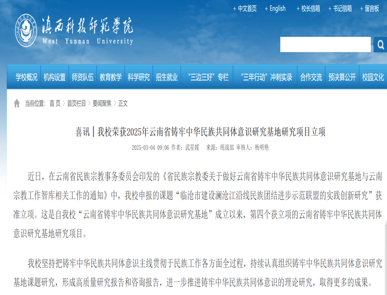 2025年云南省铸牢中华民族共同体意识研究基地研究项目立项